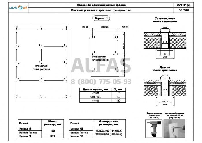 Серия DVF-31(2) предназначена для крепления HPL панелей со скрытым креплением.