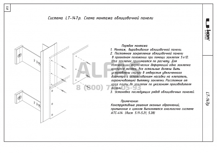 Фасадная система U-kon LT-147p под Листовой материал