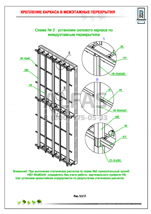 Возможна система крепления как по всей поверхности стены, так и исключительно в межэтажные перекрытия.